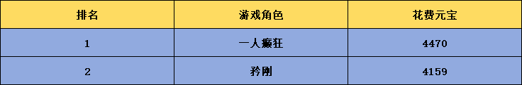 5.当花费元宝相同时将按照花费元宝的先后时间进行排行,优先排行消费时间更早的玩家