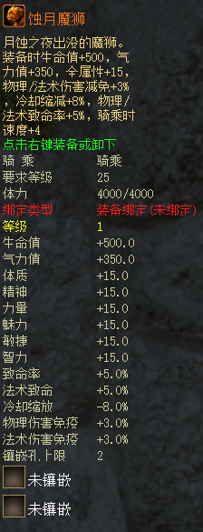 本次储值活动中推出新坐骑蚀月魔狮并加入活动保底。