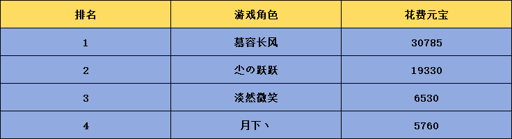 5.当花费元宝相同时将按照花费元宝的先后时间进行排行,优先排行消费时间更早的玩家