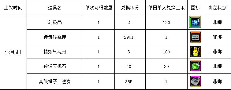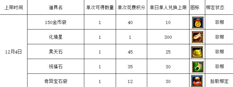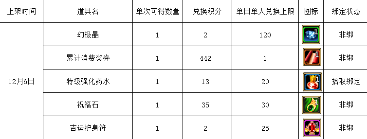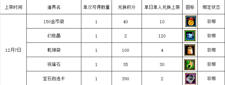 1、游戏内商城消费获取积分截止12月7日24:00结束,请注意积分获取时间以免造成不必要的损失