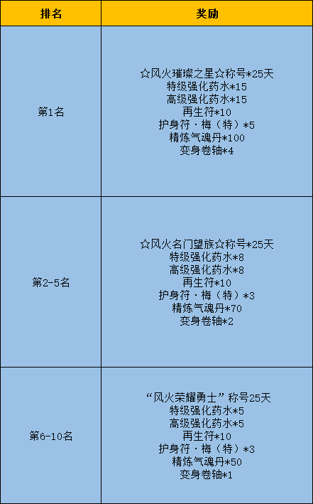 3.排行结果将在次月的第一周内在官网公示,排行奖励也将在次月的第一周内以邮件形式直接发放到排行榜中对应的角色账号中,请确保消费的账号为自己当前使用的账号,避免影响奖励的发放