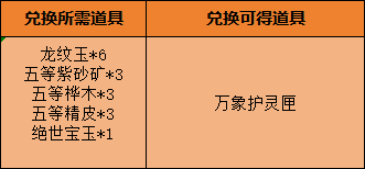 【万象护灵匣】可在两国主城内NPC“圣装使者”(位于望周3167,-248/雪硫3390 ,4547 )处兑换获得