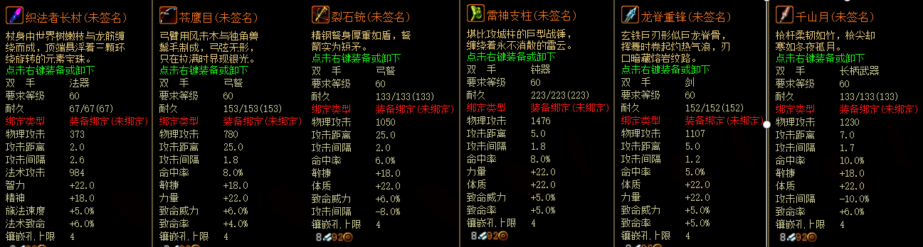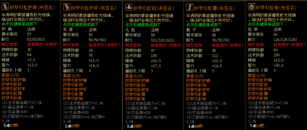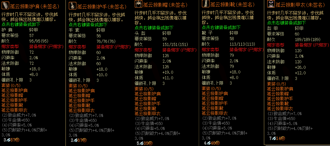新增60级世界装备:撼岳缚龙套(重甲)、孤云掠影套(轻甲)、织梦引虹套(法袍)