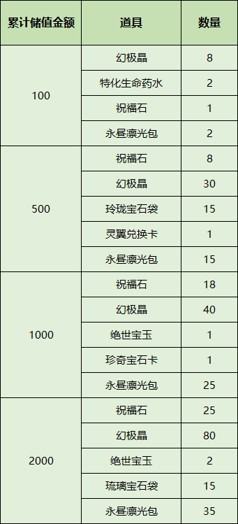 1. 在活动指定时间内储值达活动指定金额即可获赠对应虚拟宝物。
