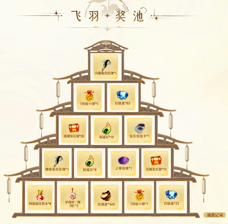 2.鎏金奖池为储值奖池,飞羽奖池为消费奖池,确认选择奖池后无法更换。