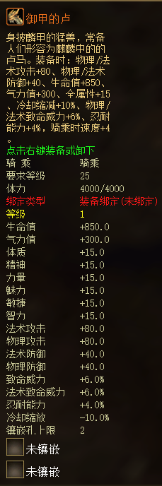 坐骑御甲的卢属性预览: