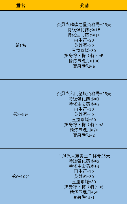 7.消费排行榜的每期排行奖励将根据版本变动进行调整,也欢迎广大风火英雄向风火小助理(QQ:820889778)提出您宝贵的建议