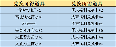 本周维护结束后,周末福利兑换将轮换更新。
