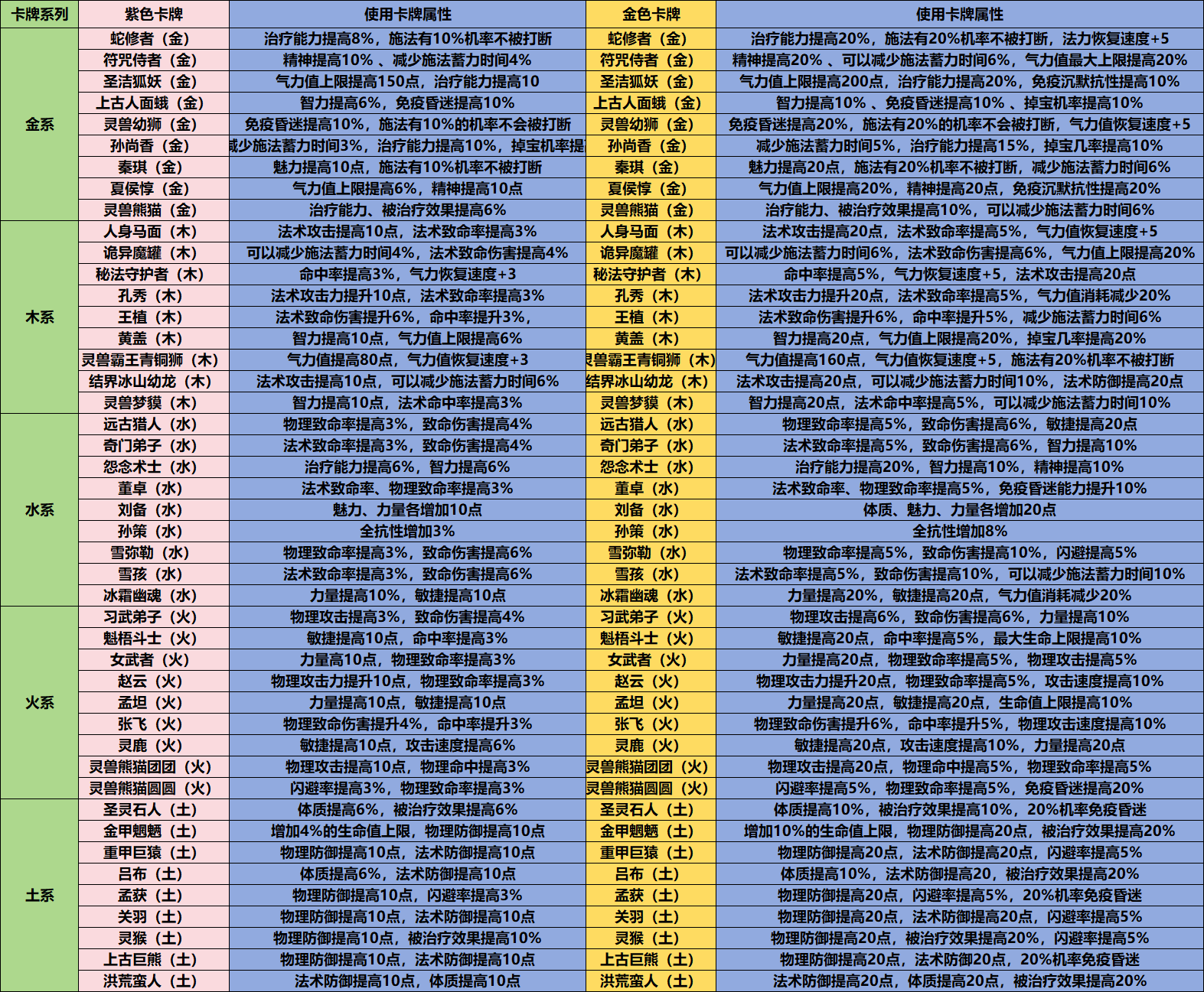 英雄卡使用属性: