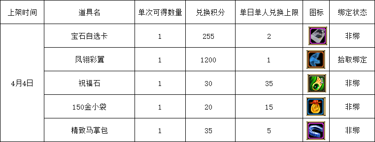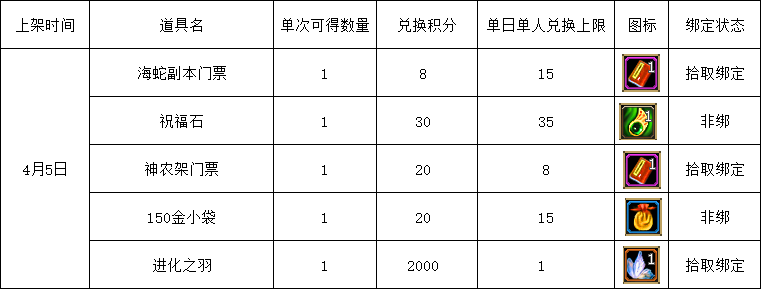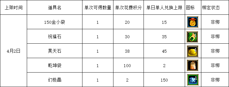 1、游戏内商城消费获取积分截止4月5日24:00结束,请注意积分获取时间以免造成不必要的损失
