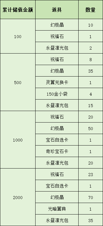 活动期间内储值达指定额度即可获赠对应虚拟宝物,每个档位道具兑换码分别只获得1次。兑换码不绑定账号。