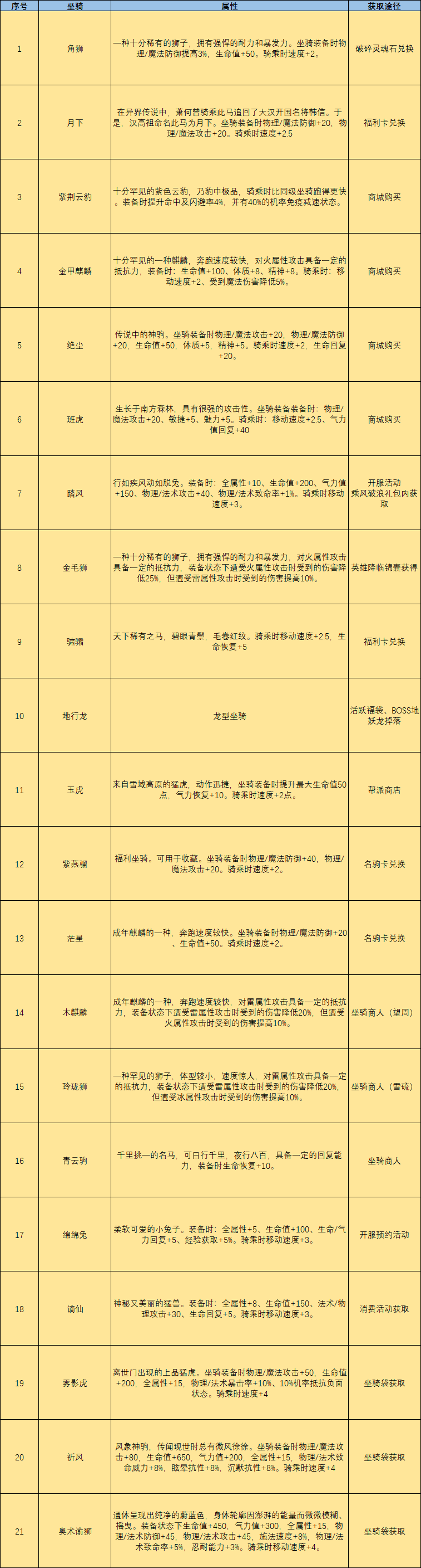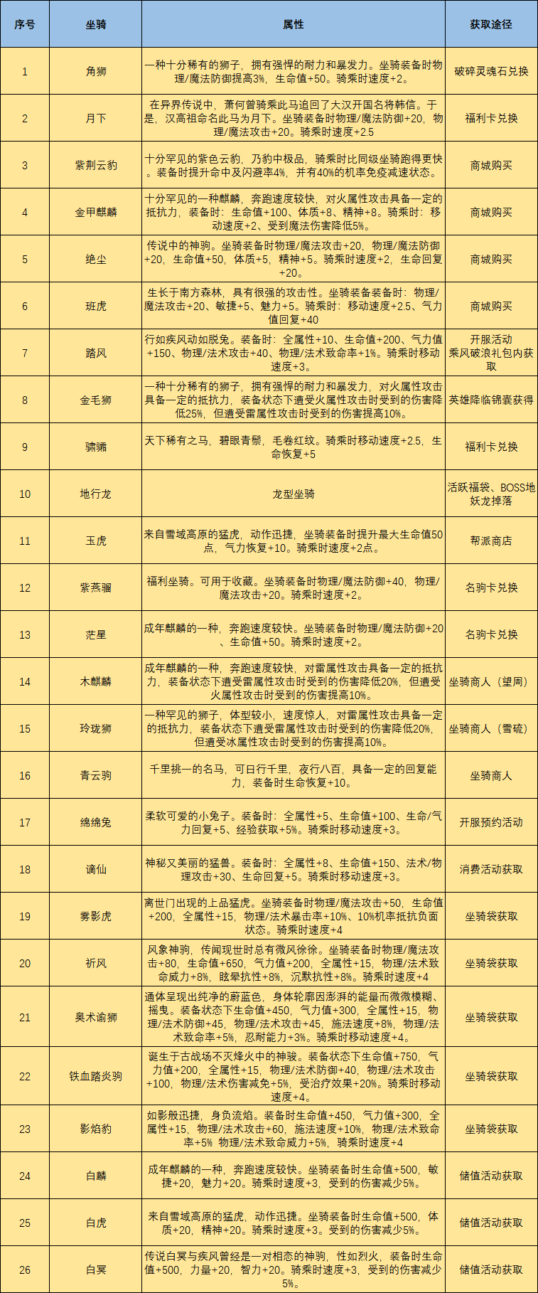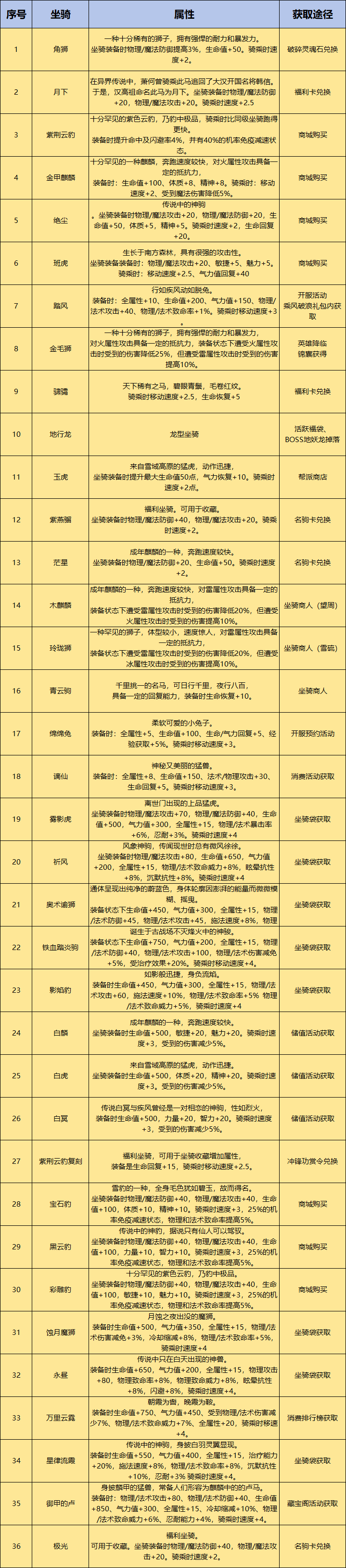 【游戏攻略】仙灵谷区服收藏坐骑总览